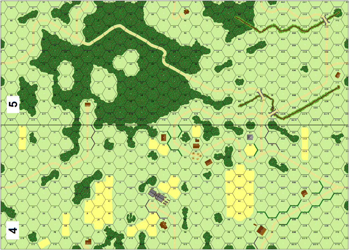 | Misc Rules: | Bldg 4O6: Stone; Foxholes may not exist in Gully hexes. |