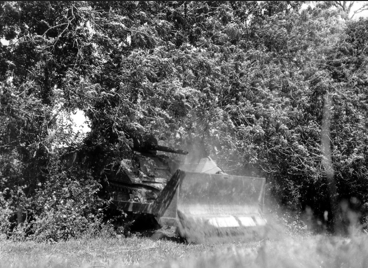 A scratch task force from CCB of the 3rd Armored Division, with some GIs from the 30th Infantry, was placed under Lt.-Col. King. His orders: clear Haut Vents. Unfortunately, due to heavy losses in previous action, he could muster only six medium and two light tanks for the dawn attack. But he swung aboard the lead tank, one equipped with a bulldozer blade, and mounted the slope without hesitation. Tearing holes in the bocage, King's tank lead the assault with the other vehicles and infantry pushing through the gaps behind him.Attacker: American (33rd Armored Regiment and 119th Infantry Regiment)