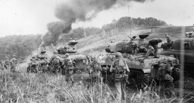 The US 90th Infantry Division had had a rough time so far in Normandy. Since 8 July, its 358th Regiment had been trying to crack the Mahlman Line, the main line of defense across the base of the Cotentin peninsula. Hill 122, the key position in the line, was covered with dense overgrowth and tangled brush that limited visibility. The summit had been taken, but the German defenders had not conceded the hill, and were defending the reverse slope. A tank platoon of the 712th Tank Battalion arrived at a critical time to offer assistance. Company K, which had been in reserve, was brought up to pass through the forward positions with the tanks, and break out into the open fields past the Lastelle Road.Attacker: American (Company K, 3rd Battalion, 358th Regiment, 90th Infantry Division and 1st Platoon, Company C, 712th Tank Battalion)