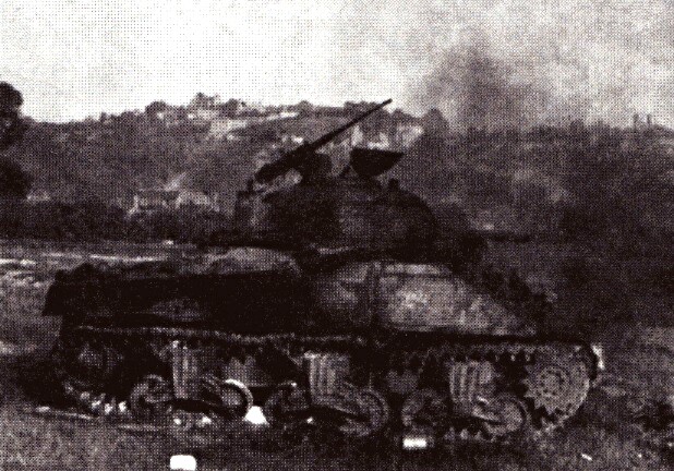 Upon reaching Caumont, the 2nd Panzer’s recon battalion immediately deployed to cover the town’s approaches. A half-hour later, a Jeep full of men from the 26th Infantry Regiment rounded a bend in the road and quickly pulled back after receiving fire from a 37mm anti-tank gun. This seemed to signal an American attack as several Shermans immediately began firing high explosive shells into the town from long range. When the shelling ceased, the Americans began marching up the road as if on a Sunday stroll. . .Attacker: American (26th Infantry Regiment, 1st Infantry Division)