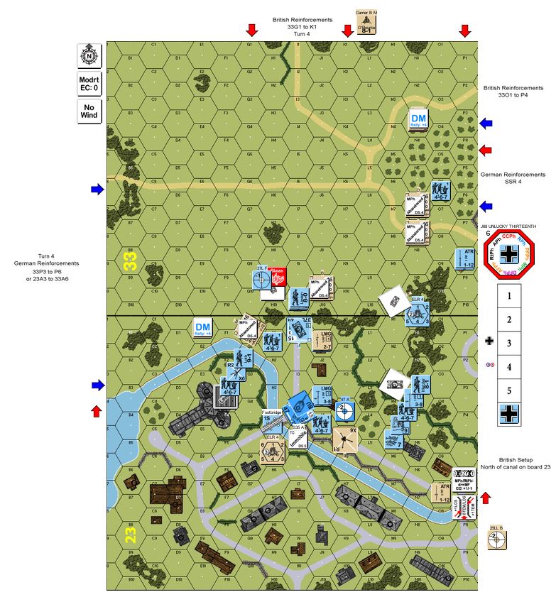 | Misc Rules: | All bldgs are single story. S35 sets up Immobilized nr one of the bridges; that bridge is footbridge |