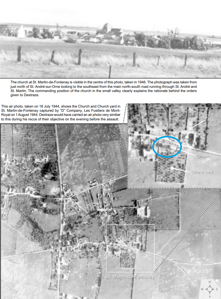 In the days following Operation Spring, the 2nd Canadian Infantry Division conducted several short but sharp engagements to improve their positions. One such position was the adjoining villages of St. André-sur-Orne and St. Martin-de-Fontenay. The Canadians held the southeast portion of St. André and all of St. Martin except the church on the southern outskirts. Brigadier H.A. Young wanted the church taken. He believed the objective could be taken by a company of infantry supported by engineers.Attacker: Canadian (Les Fusiliers Mount-Royal)