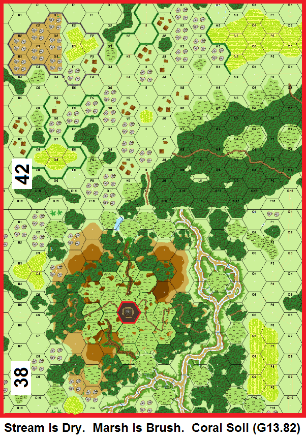 | Misc Rules: | PTO, LJ. Brush replaces Jungle around X1 overlay. Coral soil. A: Assault Engineers and Sappers |