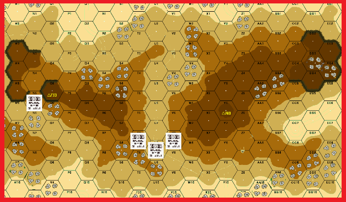 Misc Rules: DTO (F.1), Woods/Bldgs: Crags (B17), No roads. A: must enter on 19 separate hexes