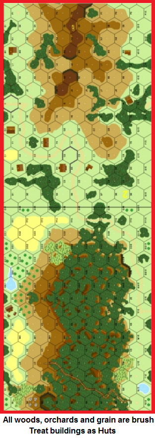 | Misc Rules: | Treat Woods/Grain/Orchards as Brush. Only 1 Road. A: T-34s have unlimited APCR |