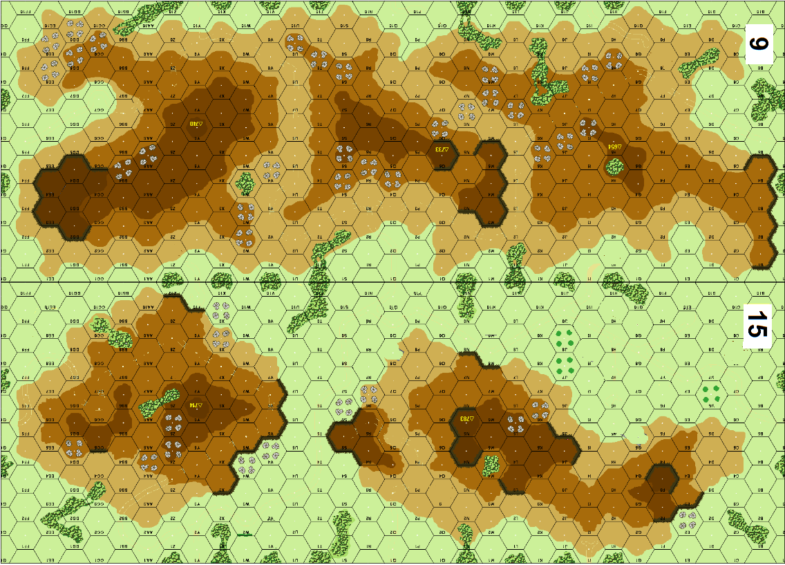 | Misc Rules: | Night rules. No roads, bldgs, walls, or hedges. Woods are Brush |