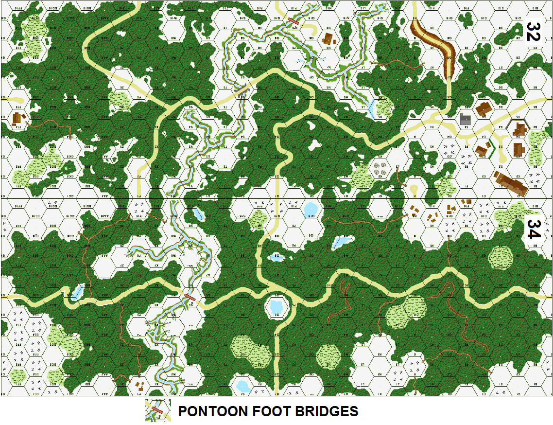 | Misc Rules: | GS, darkness LV Turns 7-8. Pontoon foot bridges. Stream is Deep but no Ice. D: WC, Pillbox4 |