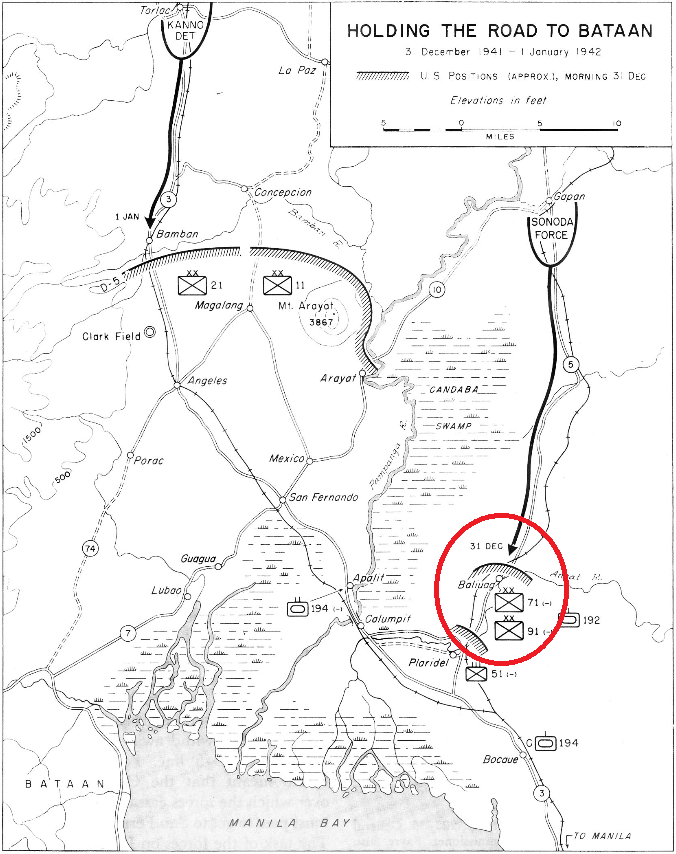 Baliuag, in Pampanga Province, was an important defensive position along the last of the defensive lines shielding the withdrawal of USAFFE troops into Bataan. Baliuag was then “…a town of rambling houses and nipa huts scattered along Route 5 and the north bank of the Angat River.” Indeed, if the enemy were to push south of Baliuag they would have been able to reach Plaridel, six miles to the south, and then cut the road leading from Manila to the vital bridge at Calumpit, cutting off any remaining South Luzon Force elements trying to make it into Bataan. As the 91 st Infantry Division (PA) withdrew, the 71st Infantry Divison (PA) initially defended Baliuag on 31 December 1941 against an assault by a battalion of Japanese infantry from the 48th Infantry Division supported by the 4th and 7th Tank Regiments. The Japanese force was led by Col. Seinosuke Sonoda, commander of the 7th Tank Regiment, and it also had a company of engineers also to repair and roads or bridges to facilitate the Japanese advance. Early Japanese efforts to ford a stream north of Baliuag were resisted successfully, and the enemy sought a new avenue of approach. The 71st stayed in Baliuag until early afternoon, when they departed at about 1400 enroute for Plaridel and movement onward to Bataan. By this time the Japanese had managed to reach the eastern end of Baliuag and by 1500 were massing to make an attack. With nothing in between the retiring 71st and the approaching Japanese combined force, Brigadier General Albert M. Jones, Commander of South Luzon Force, ordered the M3 Stuart tanks of Company C, 192nd Tank Battalion to be committed in order to hold the enemy at Baliuag. Beginning at 1700, the Japanese sent two platoons of medium tanks into Baliuag, and there they were engaged by there by two platoons of Company C/192nd in a back-and-forth fight lasting some two hours long.Attacker: American (Company C, 192nd Tank Battalion)