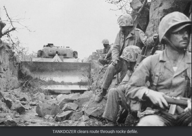 For days the almost invisible Japanese had taken a horrendous toll of the Marines as they fought their way across the Iwo moonscape. With casualties approaching the 12,000 mark, even the gung-ho Marines were showing serious signs of strain. Yet the 3rd Division lay stalled a few hundred yards from Hill 362C, hung up on yet another network of daunting defenses. This far on Iwo, major assaults had been preceded by intense bombardment and airstrikes, but on March 7, Erskine moved the 3rd’s jump-off time up to 0500 hours, with no bombardment in advance. Lt. Col. Cushman’s 2nd Battalion had managed to gain several hundred yards, perhaps a week’s worth of daylight advances, when at 0730 daylight revealed them to the Japanese. A hailstorm of bullets and mortar rounds stopped the advance and quickly cut off the Americans from their own lines. The 2nd Easy and Fox companies were fighting for their very survival as armor and infantry units from the 21st Regiment tried to extricate them.Attacker: American (USMC) (Companies E and F with 21st Regiment armor)