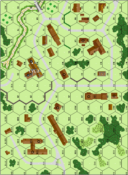 | Misc Rules: | Wooden bldgs, Stream is a dry gully. A: MOL w D: 4 secret depots, Russian must Flame them |