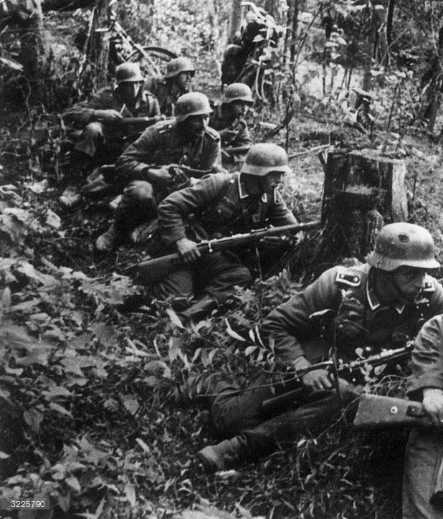 The Russians were benig forced back to the Dneiper River by the German infantry divisions thrusting from the west and south. A Russian battalion, forming part of an infantry brigade, received orders to dig-in south of a heavily forested crossroad leading to Kanev and to hold out to the last man. The German 169th Infantry Regiment of the 68th Division, moving from the south, was to capture that crossroad and establish contact with German forces driving towards the Dneiper from the west. The Russian main battle position was organized in-depth within the forest; complete with well-camouflaged foxholes, wooden mines, and plenty of snipers. At 0900, the 1st Battalion of the 16th Infantry Regiment approached the forest from the south.Attacker: German (1st Bn., 169th Inf. Regt., 68th Infantry Division)
