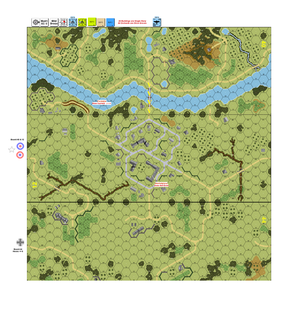 | Misc Rules: | Grain: Brush, Olive Groves (B14.8), River is Fordable. A: Air (E7) |