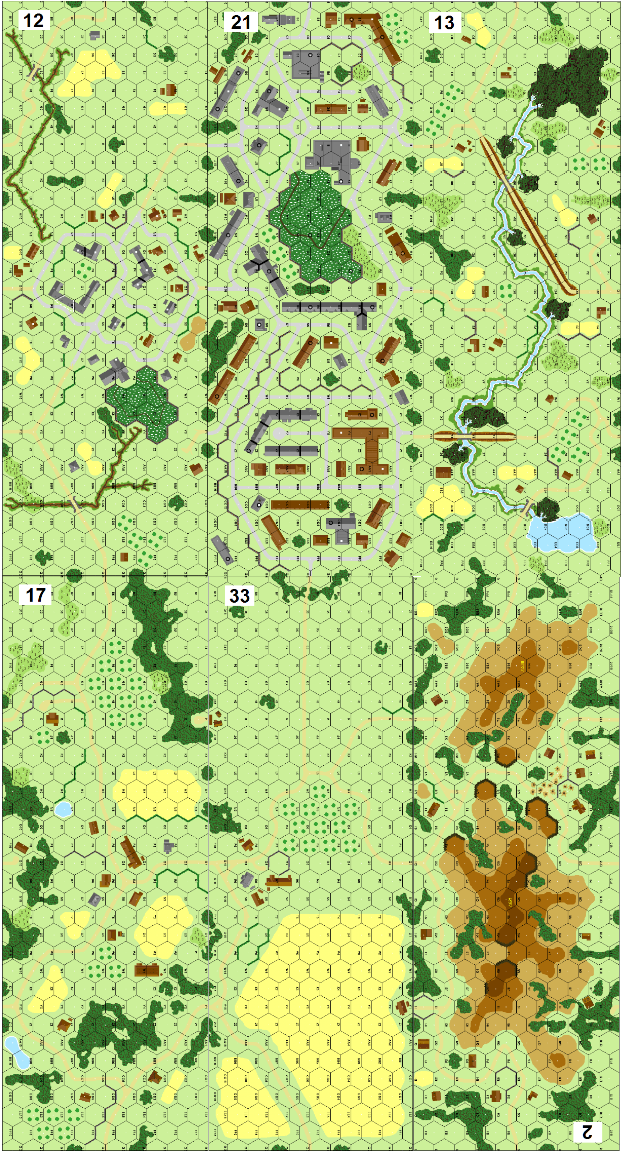Plains of Steel Campaign Game : The SP campaign game is for 2 players and includes 4 scenarios depicting the final push of the lead elements of the 1st SS-Panzer-Division "Leibstandarte Adolf Hitler" against the 5th Guards and the 5th Guards Tank armies, south of Prokhorovka on July 11 and 12, 1943, the last days of the battle for Kursk. Each scenario depicts one half day of battle. Although it is difficult to represent such a massive tank battle in ASL, we have chosen to illustrate a small part or the battle and to encourage the purchase of armored units for both sides with a relatively low cost. CAN BE FOUND IN THE PUBLIC DOMAIN ON VIEW FROM THE TRENCHES WEBSITE.Attacker: German (SS) (1st SS Panzer Division "Leibstandarte Adolf Hitler")
