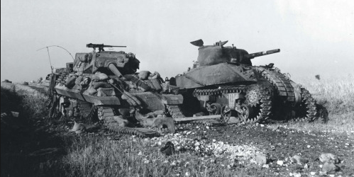 An American M10 TD and M4 Sherman, both knocked out of action by German forces at Anzio.
