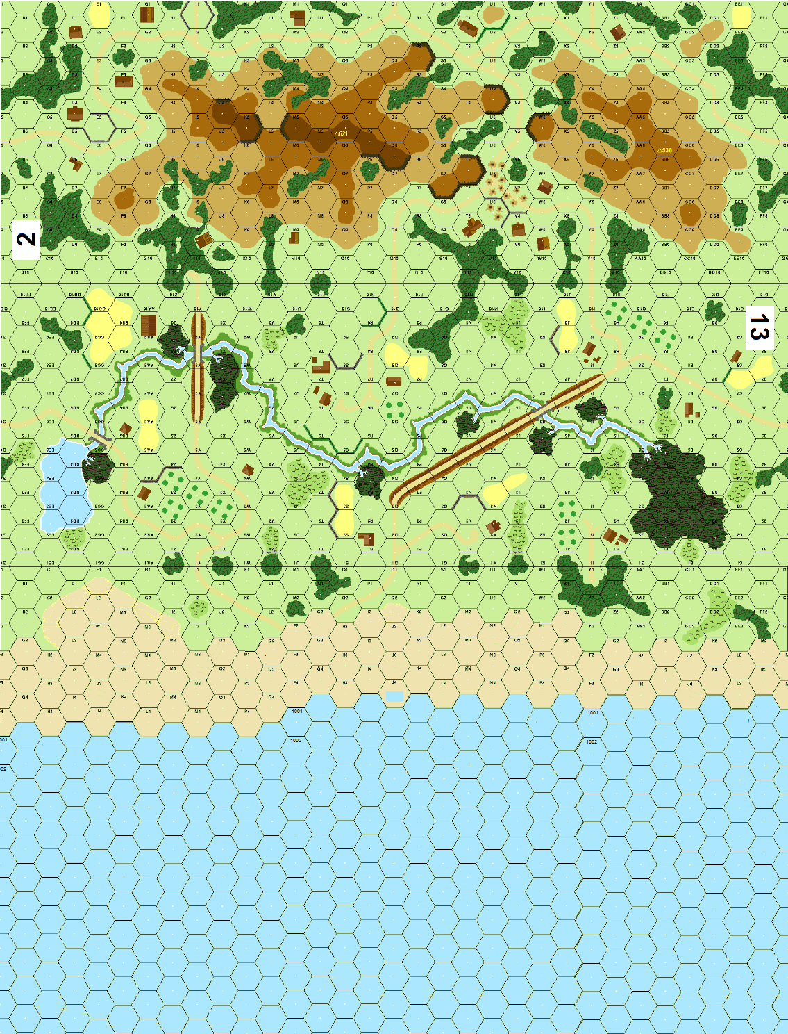 Second scenario of a three-scenario mini-campaign covering the landing of Darby's Rangers on Sicily. Some of the American forces which survived the first scenario (Gela 1--Force X Arrives!) are used as reinforcements in this scenario. Survivors from this and the prior scenario are used in the final scenario. . . . . As Company D was making its way through the mines on 68 Green, Company F of the 4th Rangers was landing on Beach 68 Red. Delayed a little by hostile seas, Company F didn't land until 4:00 a.m. and when they did they faced the Italian Sixth Army, XVI Corps held up in Pillboxes.Attacker: American (Company D, 4th Ranger Battalion)
