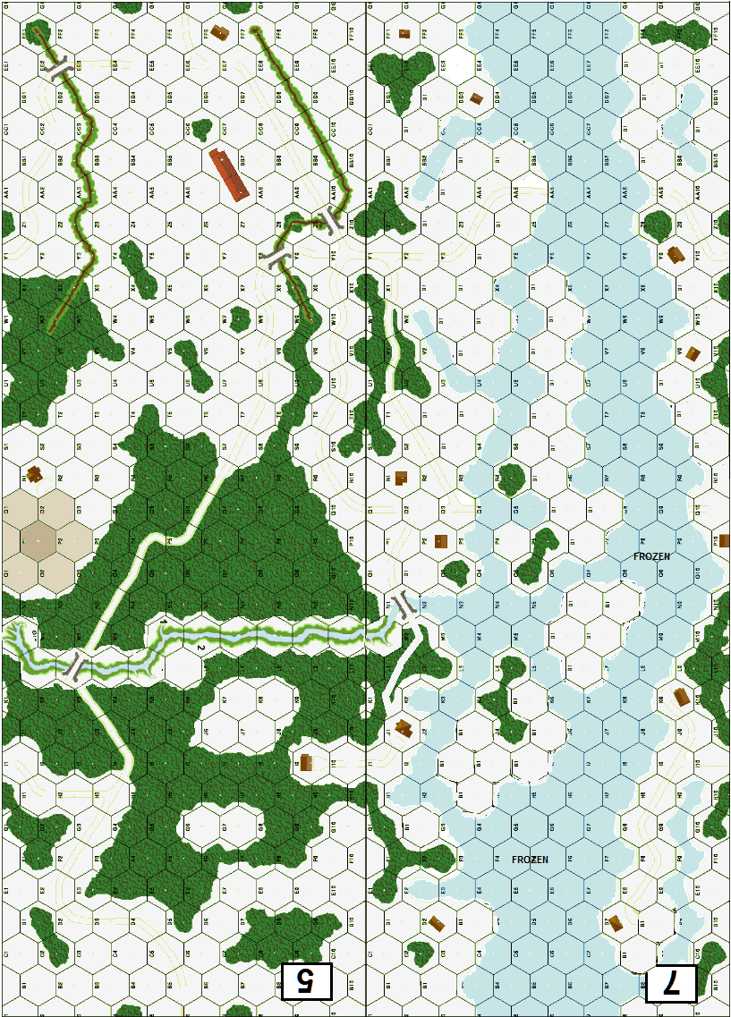 The Germans where advancing quickly north in eastern Norway, while the Norwegians where fighting a retreat, ambushing the German advance many times. When the Germans reached Aasta in April 20, they encountered heavy fire from the woods behind a river. This was going to be the longest battle fought in Oesterdalen, lasting 18 hours. The Germans withdrew from the ambush and reorganized to attack during the night, but the attack was repulsed by the Norwegian snipers hiding in the woods. In the morning both the Germans received artillery support, and the lines where bombed all morning. In the afternoon the Germans where ready to cut through the tired Norwegian defense. . . . . .Victory Conditions: Before Norwegian set-up, the German player records a choice of the following victory conditions: 1) Accumulate 15 or more CVP than the Norwegian Player 2) Control all hexes of hill 5P1 and accumulate 10 or more CVP than the Norwegian player. 3) Control building 5AA7 (overlay X13) and accumulate 5 or more CVP than the Norwegian player.Attacker: German (Elements III/340th Infantry Regiment)