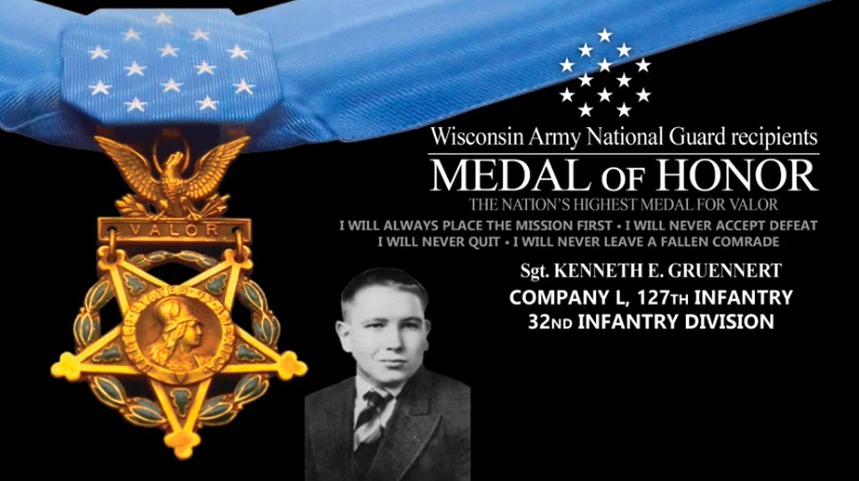 More than a month after General MacArthur had ordered his commanders to "take Buna Today", the bloody struggle was still dragging on. After Buna village was evacuated and given to the Allies, the push on through the Triangle, the Government Gardens and on to the beach was becoming a meatgrinder. After a daring flanking maneuver aided by Australian assault boats on Musita Island to the west, troops were sent in to punch past a coconut plantation on the way to capture the Buna Government House. Advancing behind massed mortar fire, elements of the Urbana Group closed in on the enemy hiding amongst the tall grass. Amongst the men destined to be stopped by the withering fire that the Japanese poured forth from their dugouts and pillboxes was Wisconsin National Guardsman Sgt. Kenneth Gruennert who had an amazing throwing arm. Sgt. Gruennert was second in command of a platoon with a mission to drive through the enemy lines to the beach 600 yards ahead. Within 150 yards of the objective, the platoon encountered 2 hostile pillboxes. Sgt. Gruennert advanced alone on the first and put it out of action with hand grenades and rifle fire, killing 3 of the enemy. Seriously wounded in the shoulder, he bandaged his wound under cover of the pillbox, refusing to withdraw to the aid station and leave his men. He then, with undiminished daring, and under extremely heavy fire, attacked the second pillbox. As he neared it he threw grenades which forced the enemy out where they were easy targets for his platoon. Before the leading elements of his platoon could reach him he was shot by enemy snipers. His inspiring valor cleared the way for his platoon which was the first to attain the beach in this successful effort to split the enemy position.Attacker: American (Elements of the 127th Infantry Regiment, 32nd Infantry Division)
