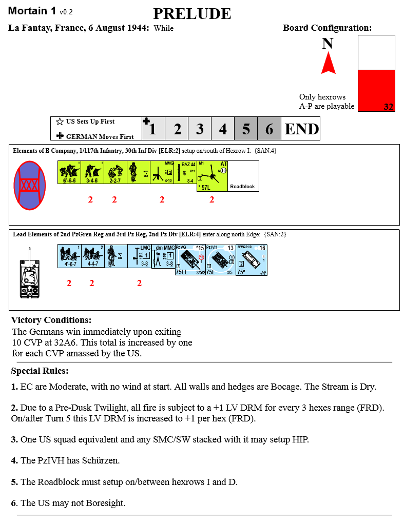 | Misc Rules: | Walls / Hedges are BC, +1 LV Dusk Hindrance for every 3 hexes |
