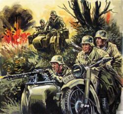 SOLITAIRE ASL - In order to attack the enemy forces still blocking the bridgehead in the back, Steiner decided to create a reconnaissance kampfgruppe made up of the Recon Battalion and the motorcycle companies of Westland and Nordland under command of Recon Battalion CO Sturmbannführer Baron von Reitzenstein. Roaming during night, they stumbled into a Soviet reconnaissance party and by the time the sun rose they were completely intermingled. When the dust cleared a mass of Soviet vehicles were captured.