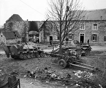 The 2nd Panzer Division stood within 6 km of the Meuse River. The entire division was low on fuel and fatigued from continuous fighting. General Collins disregarded orders and sent the 2nd Armored Division in for the attack. The 82nd Recon Battalion was sent to the western flank of the attack, and was to screen toward the west as far forward as the Lesse River, south of Celles. On 25 December, the 2nd Panzer Division Recon Battalion and part of the Division’s artillery had bivouacked near the quiet farming village of Foy-Notre Dame.Attacker: American (82nd Recon Battalion, 2nd Armored Division)