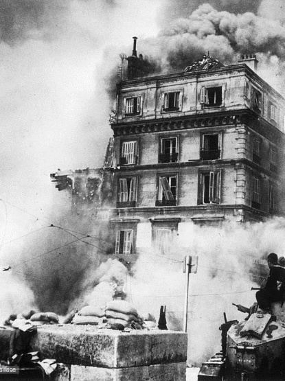 In the semi-industrial area of southern Buda, the Soviet 316th Rifle Division pressed home their attacks against the defenders along Daroczi Road. On the 25th, Soviet assault troops trapped German and Hungarian troops in the upper levels of a uniform factory. Troops from the 8th SS Division with support from armor of the Hungarian 1st Assault Battalion attempted to liberate their trapped comrades. The Soviet assault troops ferociously defended the ground floor of the factory against the attacks, but were unable to clear the factory. On the morning of the 26th, both side’s attacks jumped off and the relief attempts turned into point blank street fighting.Attacker: Russian (Elements of the Soviet 316th Rifle Division and Armored elements of the 23rd Rifle Corps)