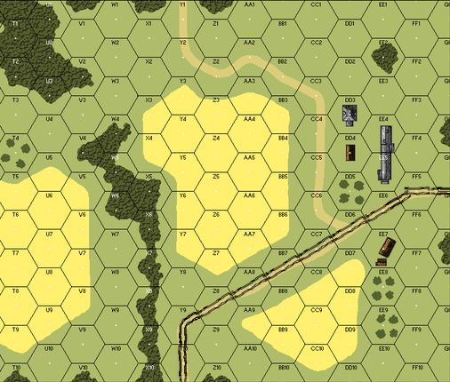 | Misc Rules: | SK1 Rules. Treat road Y10-DD6-GG6 as Embankment Railroad - 1/2 lvl obstacle |