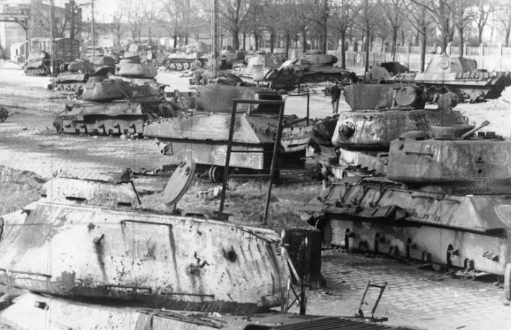The front of the 20th Motorized Division on the 26th was being compressed on all sides as the Soviet 2nd and 3rd Guards Tank Armies attempted to close the last east-west corridor into the stricken city of Berlin. The German High Command was desperate and determined to postpone the impending catastrophe, if only for a few more days and at the cost of troops up to then fighting the British and Americans. An OKW directive on the night of April 24/25 ordered: “Throw all available forces against the mortal enemy, Bolshevism. In doing so ignore the considerable territorial gains which the Anglo-American forces may make. . .”Attacker: Russian (3rd Guards Tank Army)