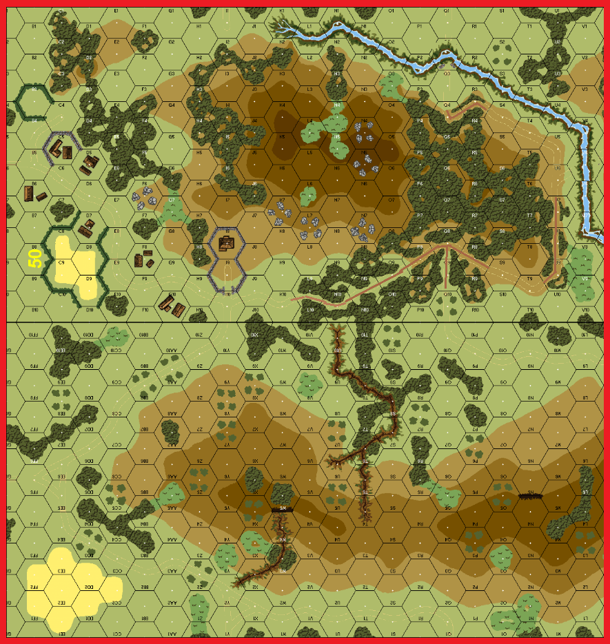 | Misc Rules: | Roads do not exist (Exc: wood-roads are Paths). Crag/trench are Rout/Rally terrain |