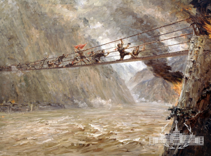 The Red Army 4th Assault Regiment had completed its forced march and arrived at the west end of the bridge. After securing the west bank, they retired to a church to organize and have a quick meal. The bridge was a suspension type, 370 feet long, made of 13 iron chains covered with wooden planks. The KMT had pulled up most of the planks, the assault troops would have to pull themselves hand over hand along the chains above a whitewater river. The 2nd company would lead the attack, the 3rd company would follow behind, laying planks. The Regiment's machine guns and riflemen were placed on some high ground near the bridge to provide covering fire.Attacker: Red Army (Elements 4th Assault Regiment, Chinese Red Army)