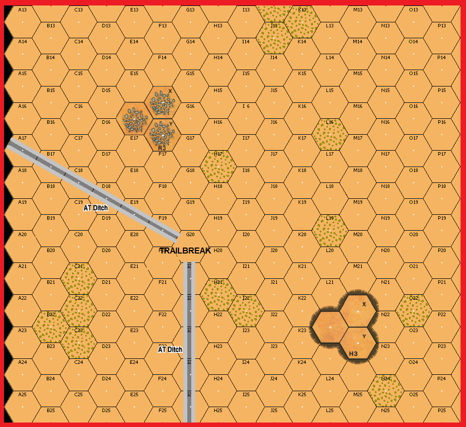 | Misc Rules: | Heat Haze. D: AT Ditch has one Trail Break thru it. |
