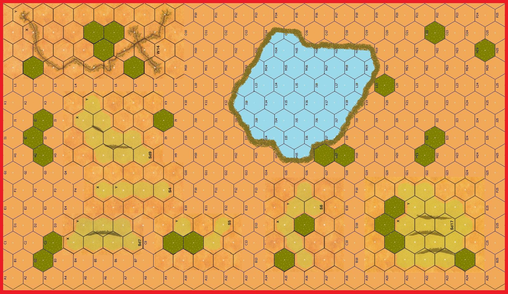 | Misc Rules: | Treat Scrub as Inherent Woods. D42 deir locations are treats as Ponds. D: Pillbox1 |