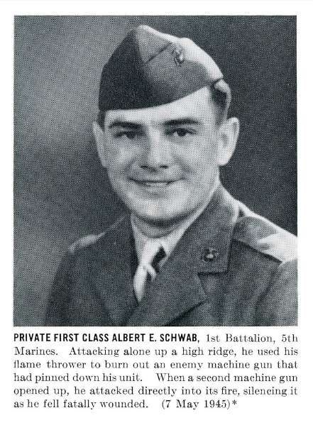 Lt. Gen. Fujioka’s 62nd Division was disintegrating as it frantically attempted to slow the American 1st Marine Division in its drive south toward Dakeshi. A deep draw in front of the 1st Battalion, 5th Marines was the centerpiece in Fujioka’s Awacha defense. The 1st Battalion, 5th Marines methodically moved forward 300 yards to the edge of the draw. Heavy Japanese fire from a ridge pinned Headquarters Company in a valley. Recognizing the danger to his unit, PFC Albert Schwab quickly took action and earned the Medal of Honor.Attacker: American (USMC) (Headquarters Company, 1st Battalion, 5th Marines, 1st Marine Division)
