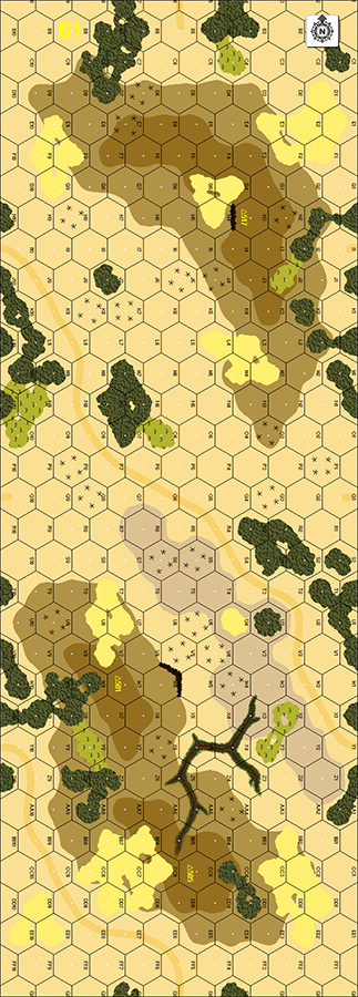| Misc Rules: | Desert board. Grain: Scrub. Broken units not eliminated for Rout failure. A: Variable OB |