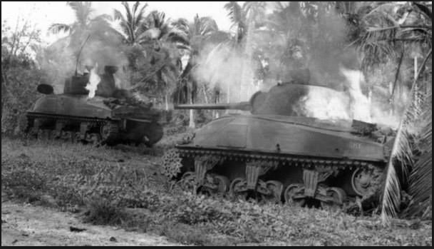 The American 37th Infantry Division was closing in on the Japanese 14th Army Headquarters at Baguio. Gen. Yamashita had only the 5th Company, 10th Tank Regiment as his reserve. This company had three medium and two light tanks. Since Japanese tanks could not fight toe-to-toe against Sherman tanks, Yamashita directed the company to conduct suicide attacks with their tanks. Japanese crews attached explosives to the front hull of a Type 97 tanks and a Type 95 tanks. The 5th Company commander hid these tanks in bamboo along Route 9 down which he expected the Americans to advance. That morning 2nd Battalion, 148th Infantry sent two companies of infantry supported by Shermans, M-7 HMCs and M-18 tank destroyers down Route 9. The kamikaze tanks charged the Shermans as the rounded a bend in the road.Attacker: American (775th Tank Battalion and 2nd Battalion, 148th Infantry Regiment, 37th Infantry Division)