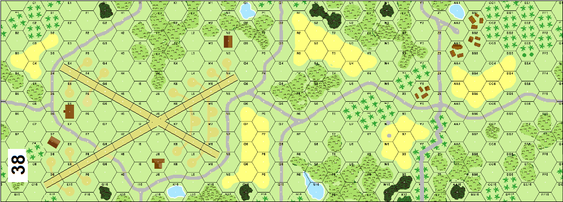| Misc Rules: | PTO (Exc: roads and buildings exist). Woods are Brush. Coral Soil. |