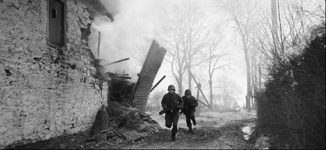 The roadblocks along the Wiltz road had not been established in vain. Even the disaster at Wardin bought time for the 101st Airborne to move into position around Bastogne. Just as Lt. Colonel Roy Inman's 2nd Battalion of the 327th Glider Infantry Regiment was relieving some engineers in the village of Marvie, a platoon of German tanks, led by a single Jagdpanzer, began shelling the town and engaging Team O'Hara's light tanks. At 1100, a company of panzergrenadiers in halftracks, came barreling out of the woods right into the town and almost on top of Inman's glider men.Attacker: German (Panzergrenadier-Lehr-Regiment 901, Panzer-Lehr-Division)