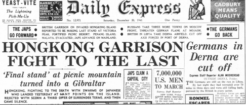 On 8 December 1941, the Japanese 38th Infantry Division received the code words "Hana-Saku, Hana-Saku" (literally "flowers abloom. flowers abloom") which signaled the start of the Japanese attack on the British Crown Colony of Hong Kong. The Kowloon peninsula was taken with only light casualties. A request to surrender Hong Kong Island was refused. During the night of 18/19 December the Japanese streamed across from the mainland. Canadian A Company, and one platoon of D Company, Winnipeg Grenadiers were ordered to hold Mt. Butler.Attacker: Japanese (3rd Battalion, 230th Infantry Regiment)