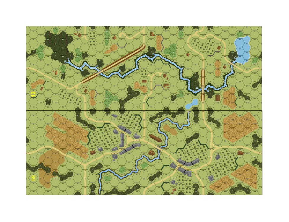 | MISSION: Replace with, “The Germans win if, at game end, they can amass > 30 FP on to the Bridge Location in hex 59S5. Only Good Order MGs (SW/vehicular) in normal range and Good Order Infantry inherent FP (using only PBF/TPBF) apply”. | Texas ASL |