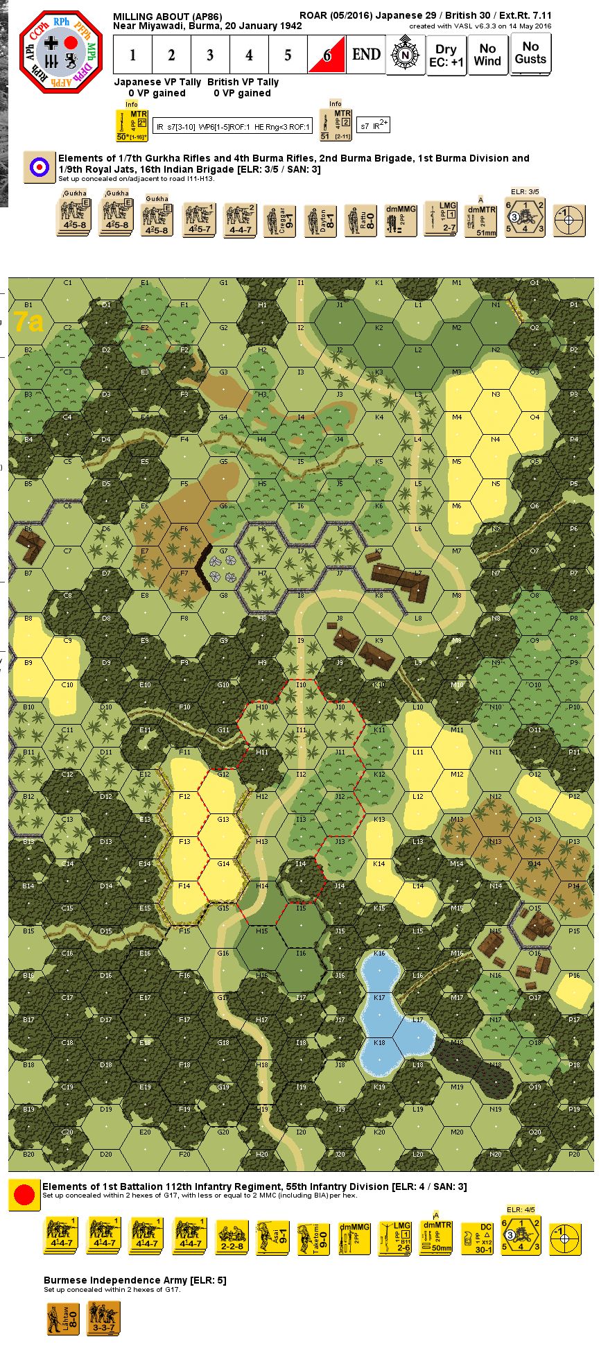 Defender: British (1/7th Gurkha Rifles and 4th Burma Rifles, 2nd Burma Brigade, 1st Burma Division and 1/9th Royal Jats, 16th Indian Brigade)