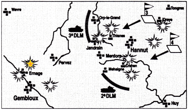 After blocking the advance of the 4th Panzer Division, the 2nd and 3rd DLMs retreated behind Gembloux to rest and reorganize. The 1st Morrocan Division and 15th DLM took up positions across the Gembloux Gap. While following close on the heels of the retreating French, the 4th Recon, 4th Panzer Division ran into advance units of the 7th Moroccan Tirailleuers at 10:00 A.M. At first the Moroccans mistook the enemy tanks for friendly. Quickly discovering their error, the Moroccan soldiers lashed out violently. . .Attacker: German (4th Panzer Division)