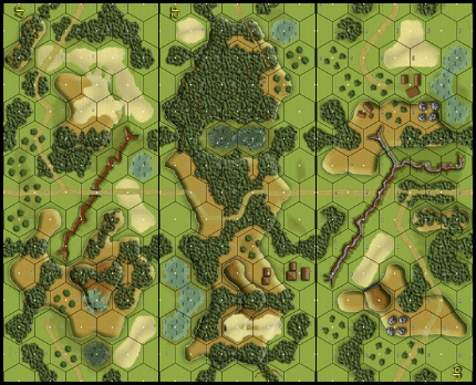 | Misc Rules: | PTO, LJ (Exc: Roads exits, bridges are Fords, Gullies are Streams). Mud for AFV movement. |