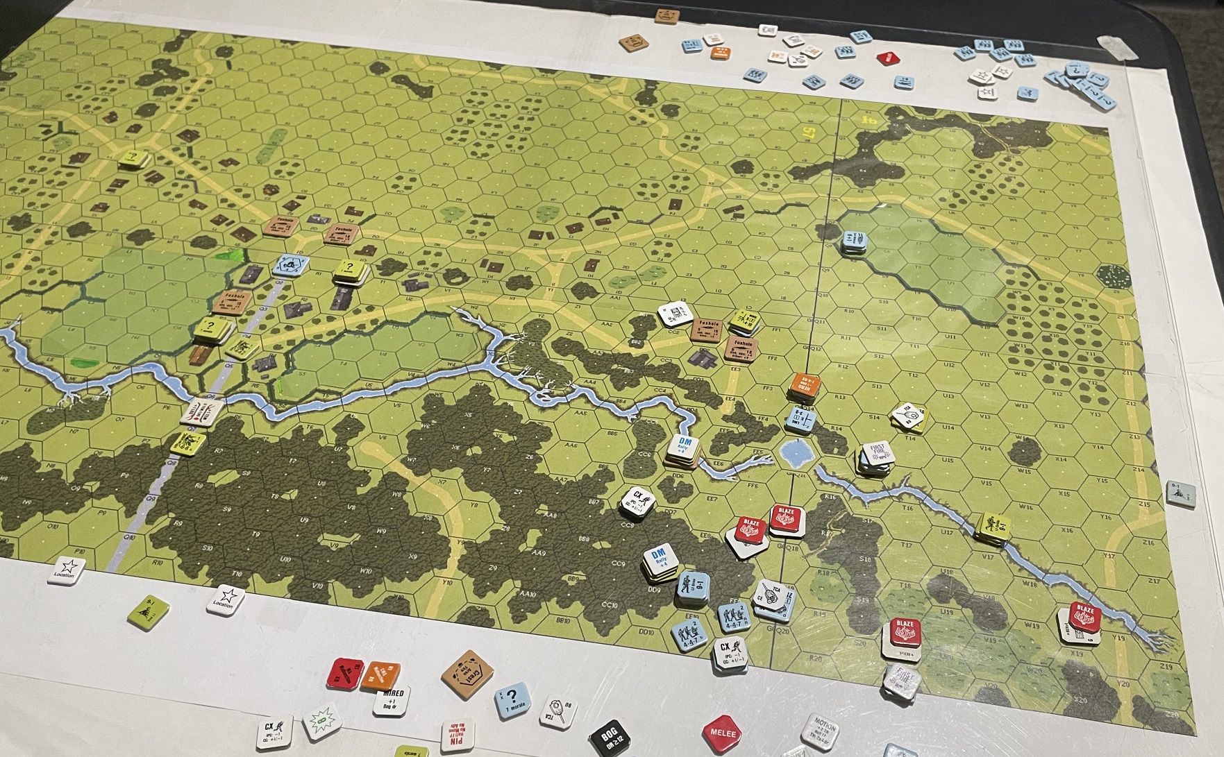 The overstretched 175th Infantry Regiment had finally crossed Saeffler Creek and was being relieved by the 113th Cavalry Squadron when the Germans, in Major General Charles Gerhardt’s peculiar vernacular, started to display “a little enthusiasm” in the form of a counterattack from three sides, led by a formidable Panther tank. Despite being hit by several bazooka rounds, the Panther churned down the main street, silencing American strong points. The aggressive German infantry followed behind, rounding up dozens of dazed American prisoners. It was into this inferno that the reinforcements of the “Red Horse Cavalry” entered, with nothing more powerful than its armored cars and some attached Stuarts. . .Attacker: German (Elements Ersatz-Division 176)