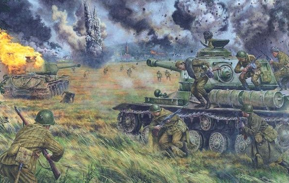The Soviet 11th Guards Tank Corps was having difficulty negotiating the steep terrain at Seelow but after two days of fighting, it had finally managed to secure a good route just to the north of town. This movement completed the Soviet encirclement of Seelow. Since its position in Seelow was now untenable, the 3rd Battalion, 90th Panzergrenadier Regiment was forced to breakout to the west or face annihilation. Heavy fighting occurred throughout the German withdraw as the forward detachment of the 11th Tank Corps tried to cut the Seelow-Muchburg road. Sgt. Alexander Kibizov, commanding an SU-100 of the 1454th SU Regiment skillfully maneuvered his tank destroyer and managed to knock out at least five German tanks/self-propelled guns.Attacker: Russian (Elements of the 27th Guard Motorized Rifle Regiment, 40th Guards Tank Brigade and the 1454th SU Regiment, 11th Guards Tank Corps)