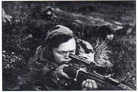 The Soviet liberation strategy of Crimea included amphibious landings on the eastern end near Kerch. The Germans had only two companies east of Kerch when the Soviets landed more than two divisions. To bolster the defenses, the 123rd Grenadier Regiment was flown in by JU-52s. The soldiers were first-class veterans and were commanded by Knight's Cross with Oak Leaves holder Major Erich Barenfanger (whose name translates of 'bear catcher'). The 123rd arrived just ahead of a Soviet attack which included recently ferried T-34s and the expert female sniper in the 691st Rifle Regiment, Tatiana Kostyrin.Attacker: Russian (691st Rifle Regiment, 38th Rifle Division and 85th Tank Regiment and 2nd Guards Rifle Division)