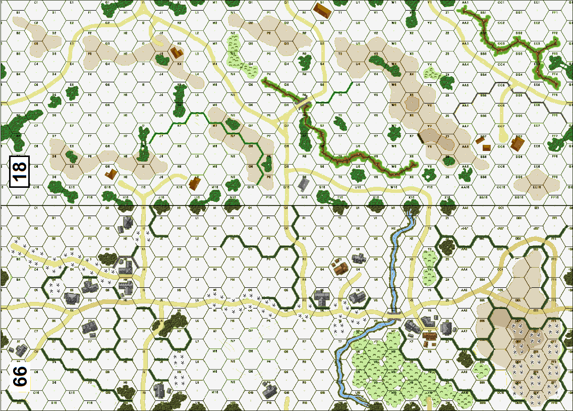 At 0645 hours, OPERATION KONRAD III began under cloudy skies with scattered light snow and a temperature of twenty-four degrees. This was the German III Panzer Corps' third attempt to relieve the beleaguered defenders of Budapest. As part of this effort, the 23rd Panzer Division moved south from Sarkeresztes to clear the high ground north of Szekesfehervar. Panzergruppe Kujacinski formed the main attack with Panthers and PzIVs along with eight attached King Tigers and four flame tanks. Moving south along Highway 81, the Germans soon encountered heavy flat trajectory fore from a Russian anti-tank front covering their protective minefields.Attacker: German (Panzer Grenadier Regiment 126, Panzer Regiment 201, Panzer Division 23 and Panzer-Flamm-Kompanie 351 with Schwere Panzer Abteilung 503)