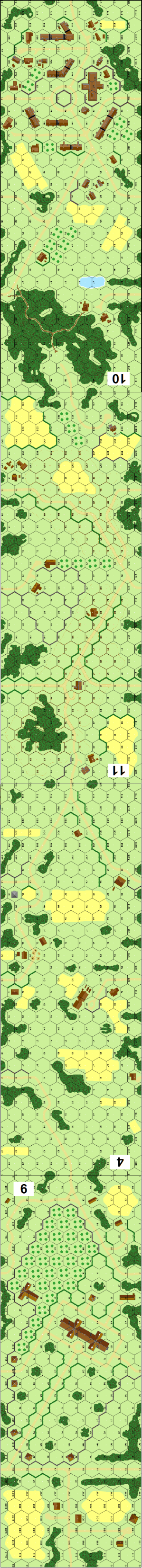 | Misc Rules: | Wooden buildings, Random Air Support both sides, No hills Bd 11 |