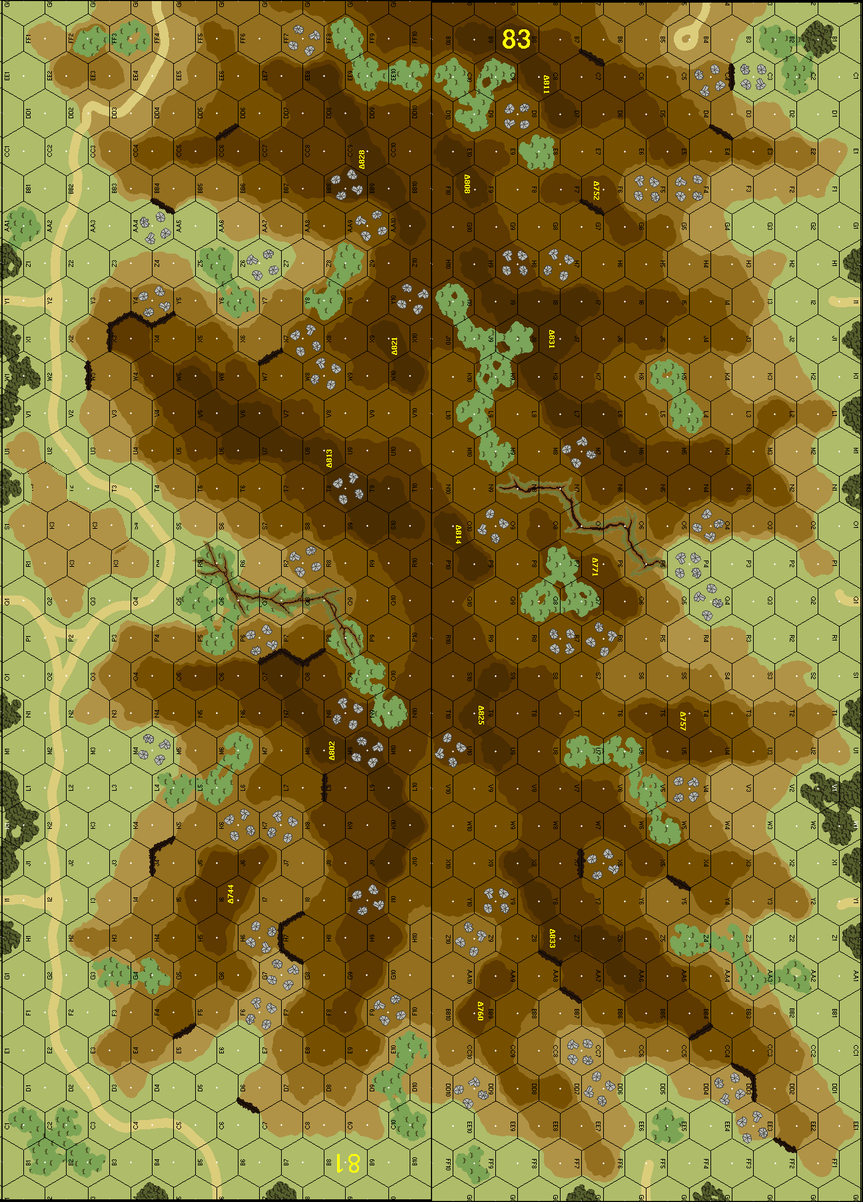 | Misc Rules: | Steep Hills, Crags are Concealment and Ambush terrain. A: Commandos for Climbing only |