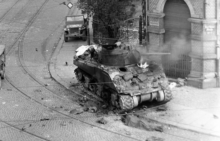 After several days of struggle, the city of Aachen was completely enveloped. The veteran United States' 1st Division had approached Aachen from the south and the 30th Division “Old Hickory” enveloped from the north. Located 5 kilometers north of Aachen, the town of Wurselen was one of few open supply routes for the German garrison in Aachen. Fighting was particularly fierce in the northern section of town, around critical rail and road links. Grenadiers and panzer from the 116. Panzer-Division “Greyhound” responded to the American pressure.Attacker: German (2/119th Infantry with A Company, 743rd Tank Battalion)