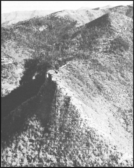 Jagged crest of the western ridge leading to the summit of Hill 926. This is the route taken by Captain Peabody's men.