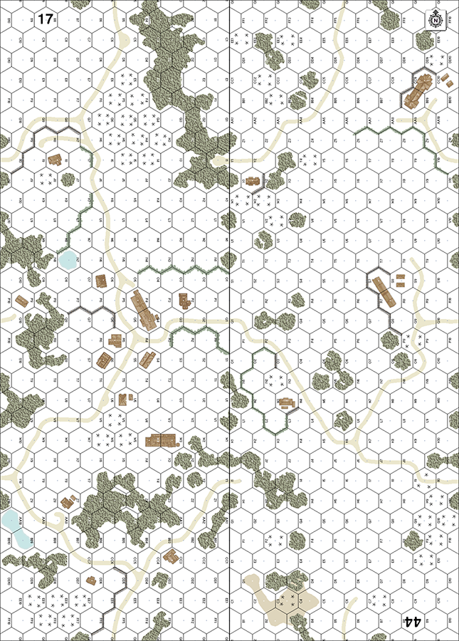 GS (E3.72), DS (E3.73). All roads dirt. Bldgs: Wooden. A: AS (A19.131), EW (E3.74).